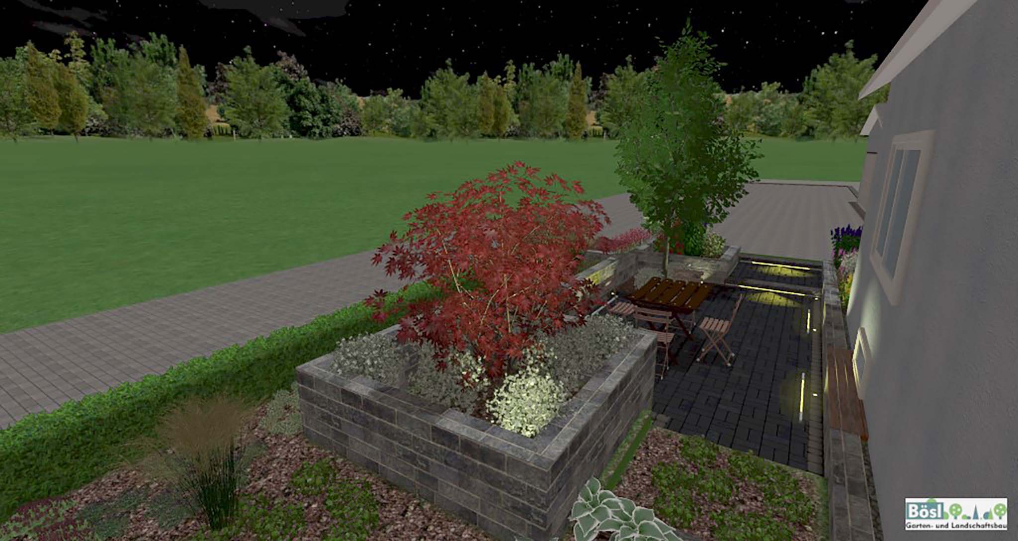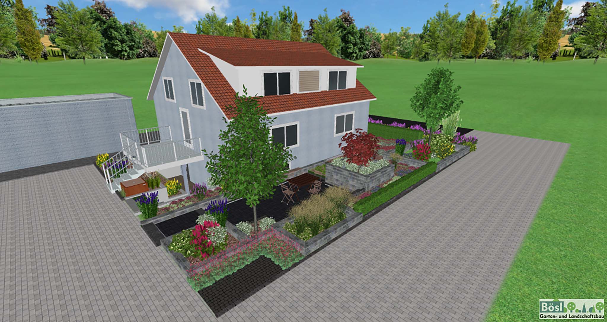 Willkommen bei Bösl Garten- und Landschaftsbau. Wir sind Ihr leistungsstarker, zuverlässiger Partner für die Neuanlage oder Umgestaltung Ihres Hausgartens und Ihrer Außenanlagen. Mit Liebe zum Detail legen wir Ihren Traumgarten an und beziehen Sie von Anfang an in die Planung mit ein. Dabei greifen wir in der Planungsphase auf modernste Technik zurück und können Ihnen Ihren Garten in unserer Planungssoftware in 3D präsentieren.